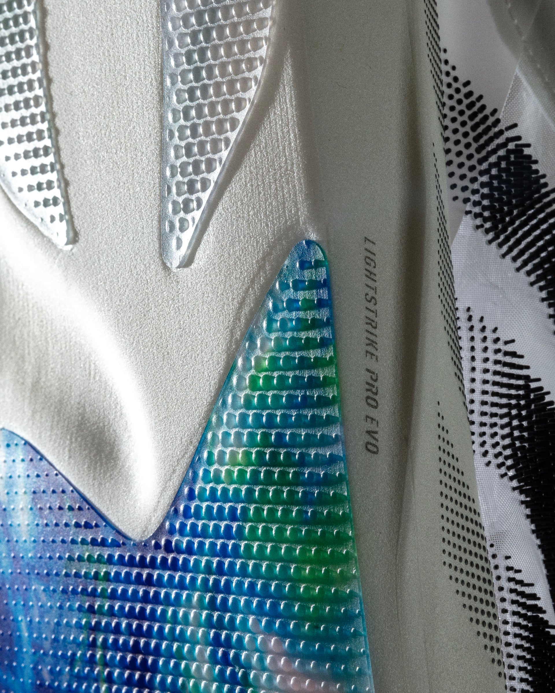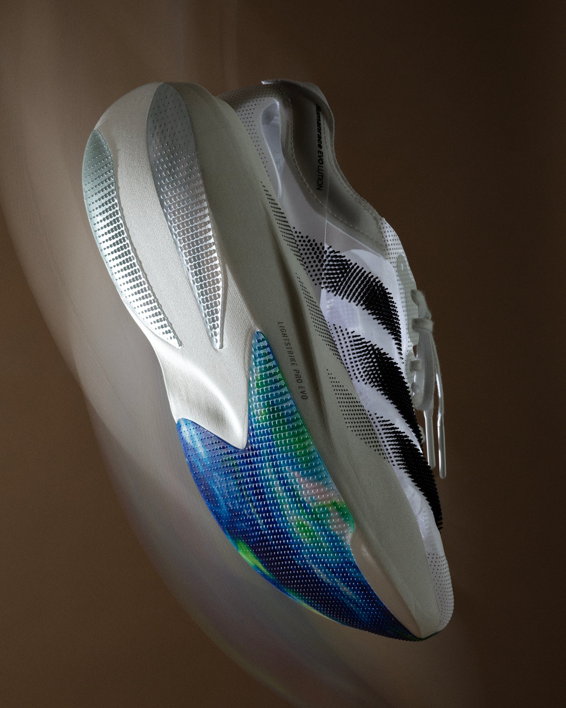 Built with Lightstrike Pro Evo foam and EnergyRods, the EVOLUTION Pro adapts adidas’ most advanced running technologies for daily wear. Custom 5D raised dot stripes and patterns introduce a sensory dimension, while a mono mesh upper and tonal lacing system deliver a minimal, lightweight structure.